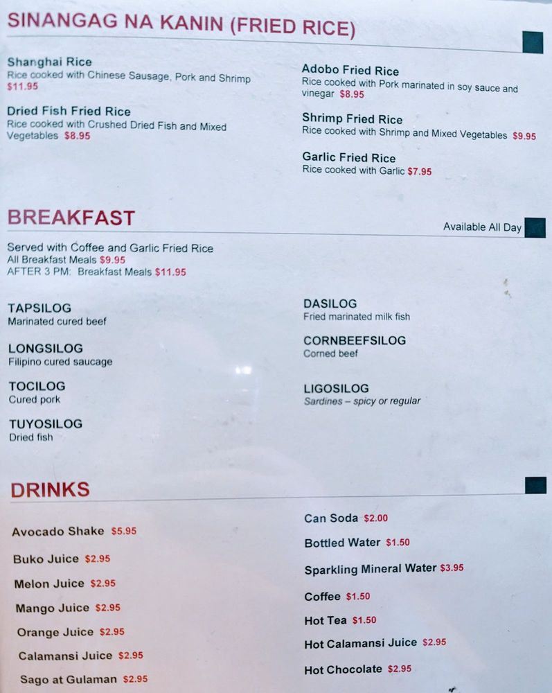 Filipino cured sausage. Served with coffee and garlic fried rice. Coffee will not be included for take out orders